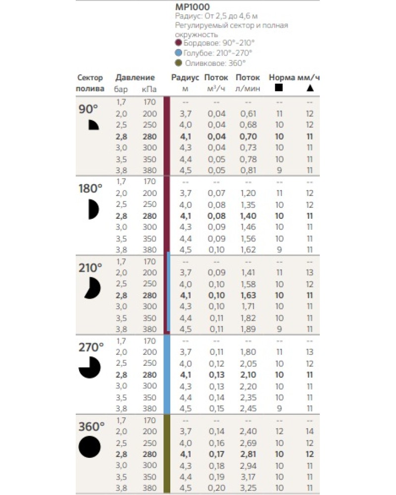 - радіус поливу 2,5-4.6 м