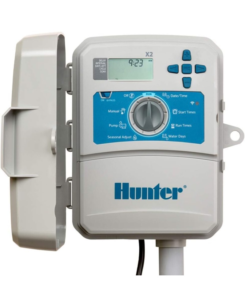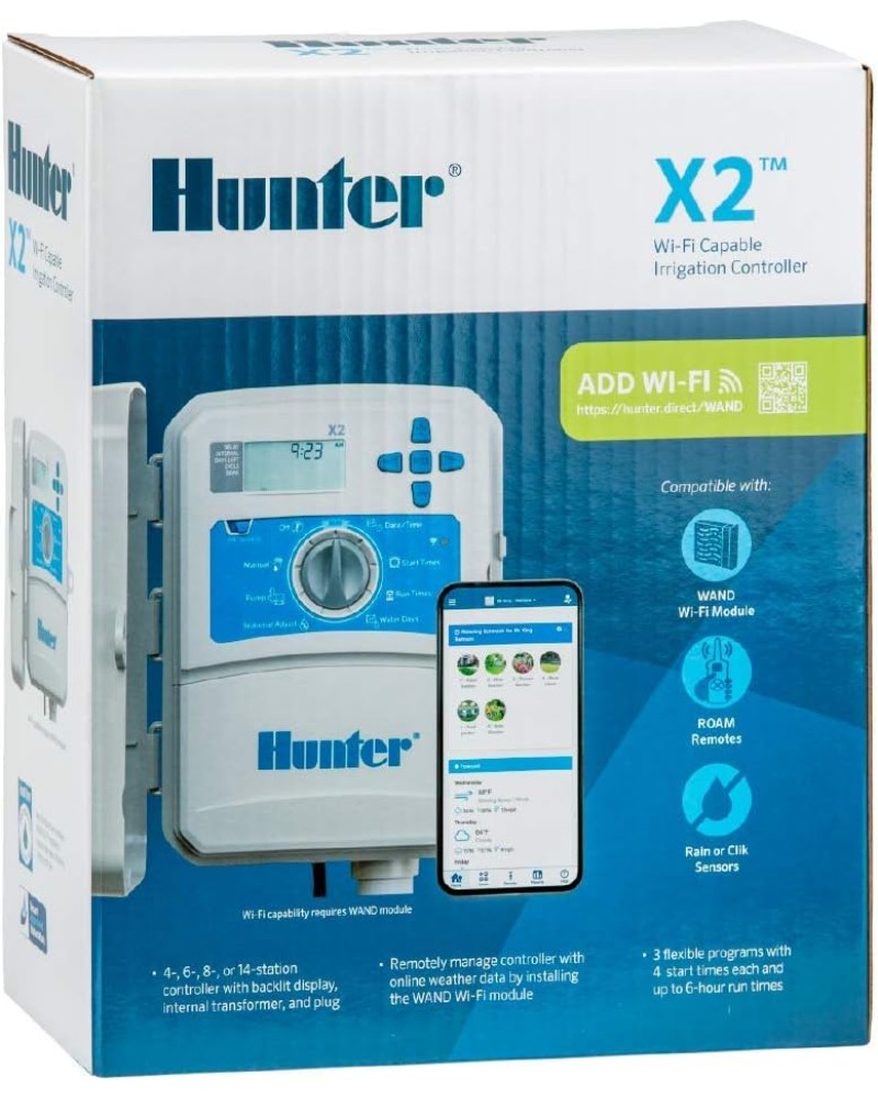 Hunter X2-1401-E — це сучасний контролер автоматичного поливу, який поєднує перевірену надійність серії X-Core та розширені можливості керування завдяки підтримці Wi-Fi (за умови підключення модуля WAND).