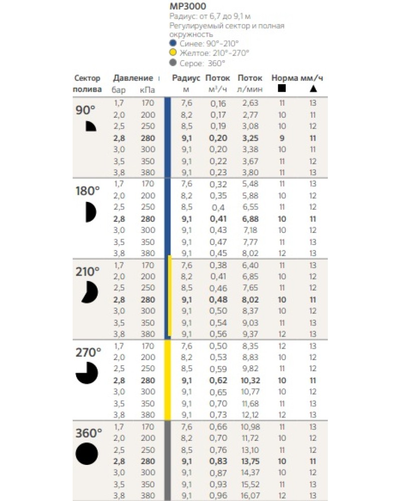 Технологія MP Rotator забезпечує багатоструменеве обертання з різними траєкторіями, що гарантує максимально рівномірний полив. Форсунка автоматично підтримує стабільну норму опадів незалежно від налаштувань сектору та радіусу.