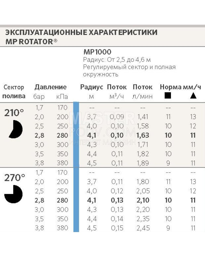 - Радіус поливу: 2,5 – 4,5 м